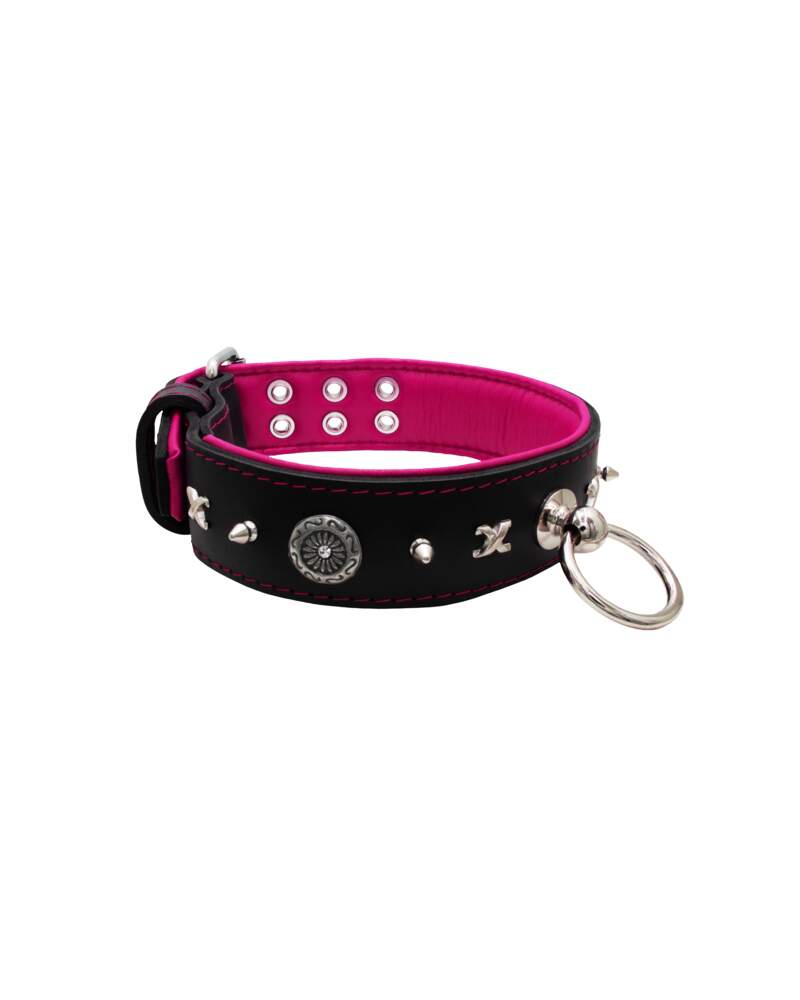 The collar it is adorned with discreet nickel motifs, including striking 10mm studs, chain motifs, and a carved round shield with rhinestones, providing a minimal yet dynamic aesthetic. The solid nickel welded ring ensures a secure connection with your dog’s leash, while it closes with a solid nickel welded buckle and high-strength rivets for long-lasting use.
